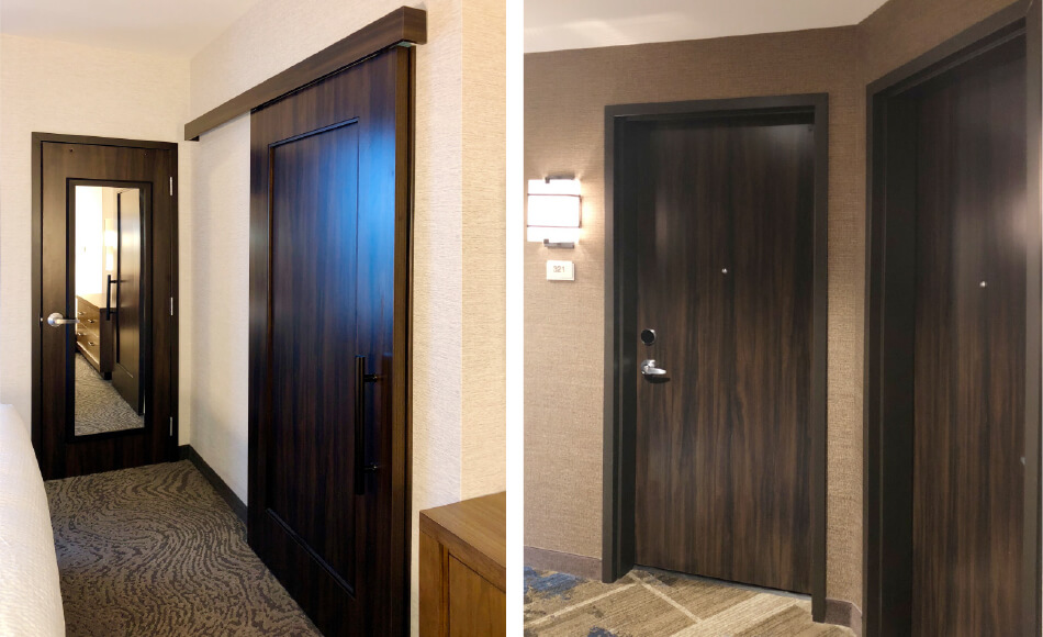 SpringHill Suites 是萬(wàn)豪國(guó)際集團(tuán)旗下的酒店品牌。面向酒店業(yè)中高端住宿領(lǐng)域,該連鎖酒店由全套房酒店組成。森盛很榮幸能為位于 Bozman 的春丘酒店項(xiàng)目提供全部室內(nèi)門、包括入戶門、平移谷倉(cāng)門、衣柜門。 表面裝飾采用定制 HPDL,產(chǎn)品兼具裝飾性和耐用性。森盛服務(wù)過(guò)的 Springhill Suites 項(xiàng)目超過(guò) 20 個(gè)。